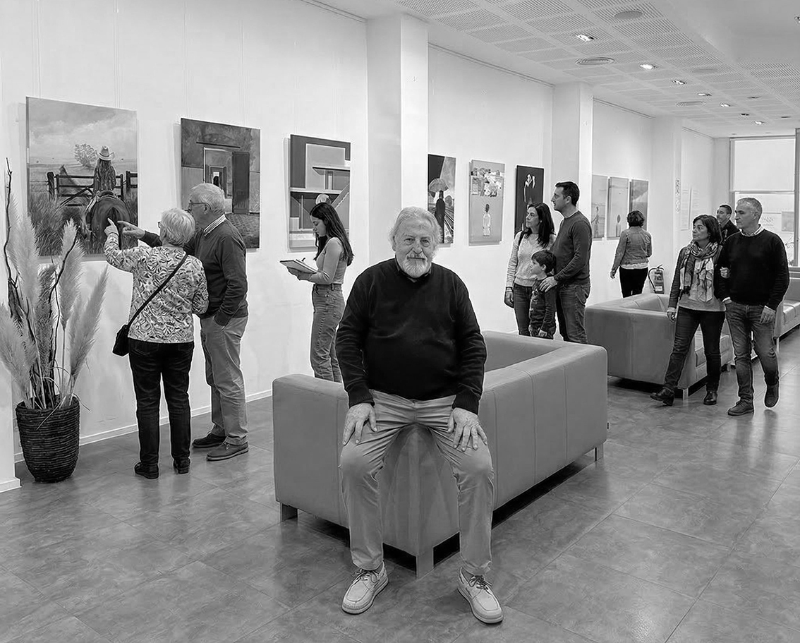 The exhibition’s title, written in Latin, alludes to the art of observing and contemplating, and is presented through 20 acrylic paintings. In each work, we see a woman, always with her back to the viewer, reflecting on her surroundings. She is simultaneously the protagonist and the spectator, inviting each person to become part of the artwork and imagine their own story.